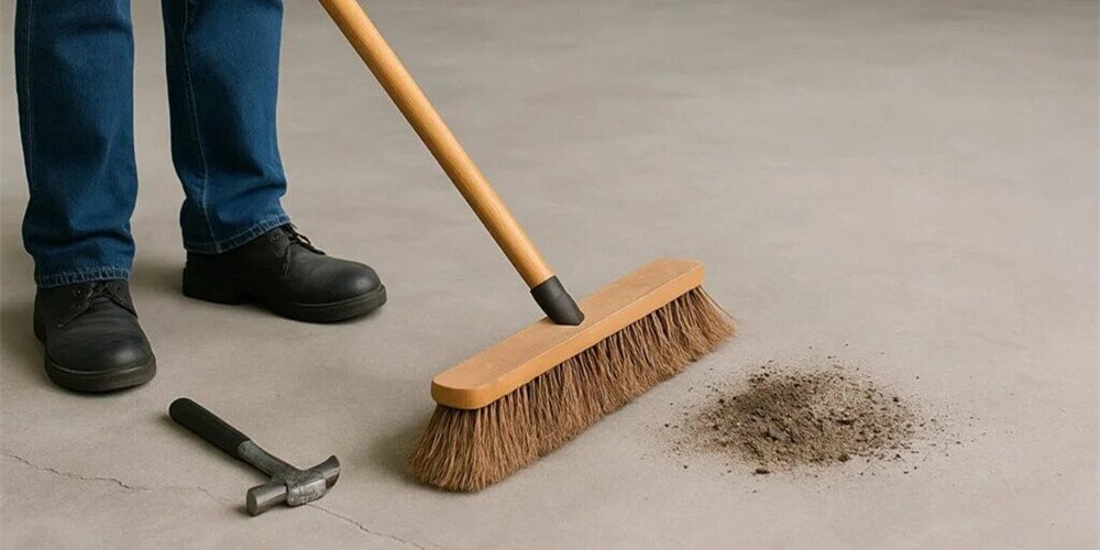Ensure the concrete is solid, dry, clean, and free of dust, cracks, or old adhesive. Sweep and vacuum thoroughly.