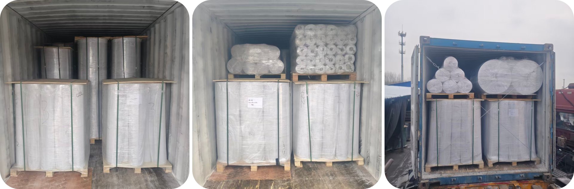 On-site photos capturing the loading procedure showcase the company’s technical expertise. High-density rubber flooring rolls are stacked on heat-treated wooden pallets, then secured with reinforced strapping and moisture-proof shrink wrap. Beneath the rolls, palletized sheet flooring panels form a stable base. This dual-layer system not only makes full use of vertical space but also distributes weight evenly, minimizing the risk of cargo shifting during ocean transit.